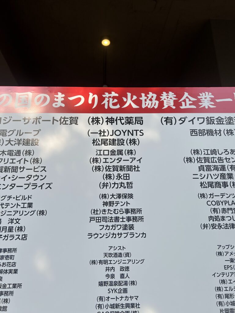 佐賀市にて毎年行われている「栄の国祭り」の際に打ち上げられる花火に対する協賛を行いました。