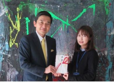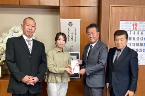 いつもお世話になっております筑前町へ、子ども達が過ごしやすい環境づくりの為の寄付を行わせて頂きました。特に読書環境の充実に向けた図書購入費へと使って頂けたらと思います。